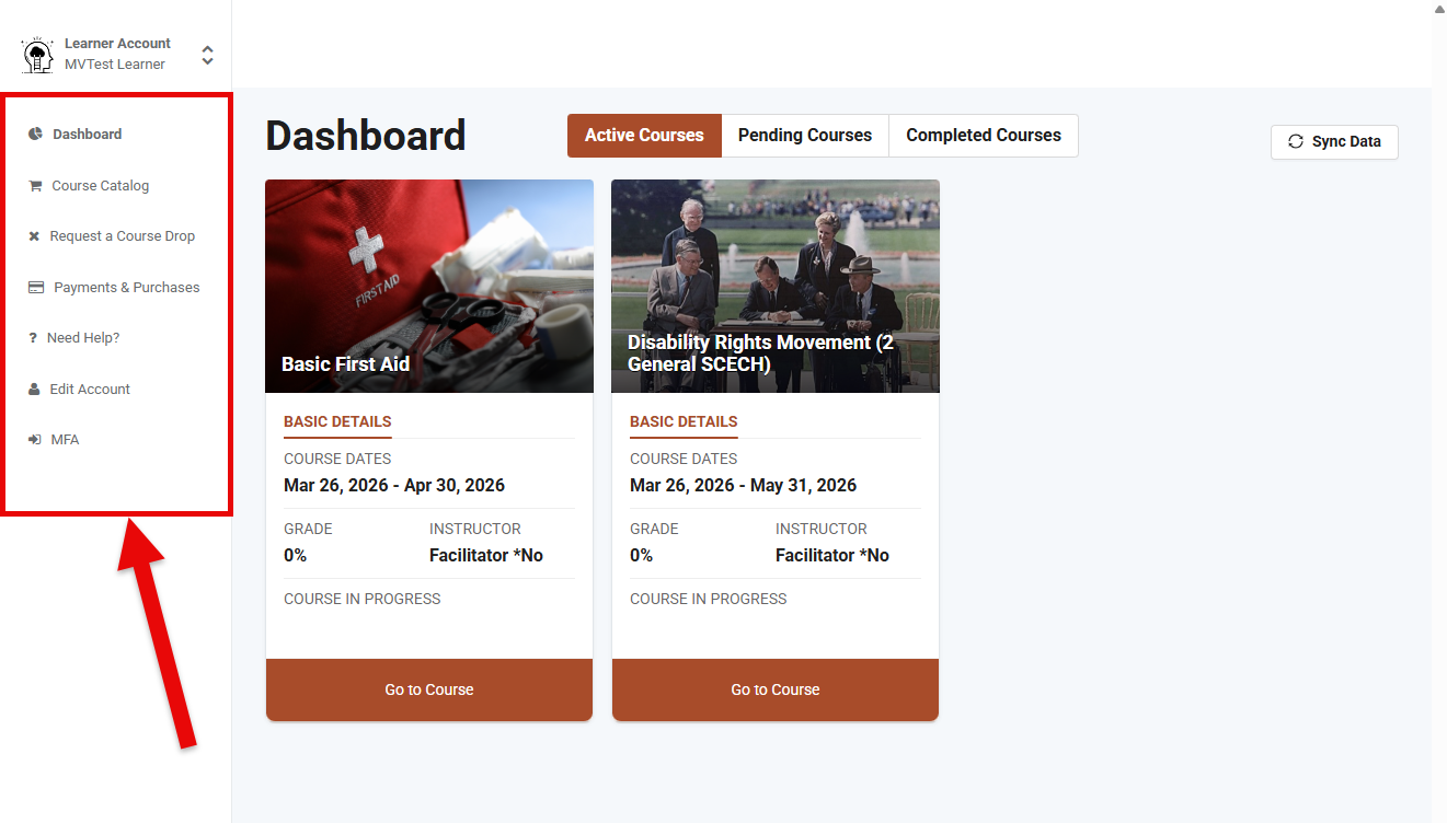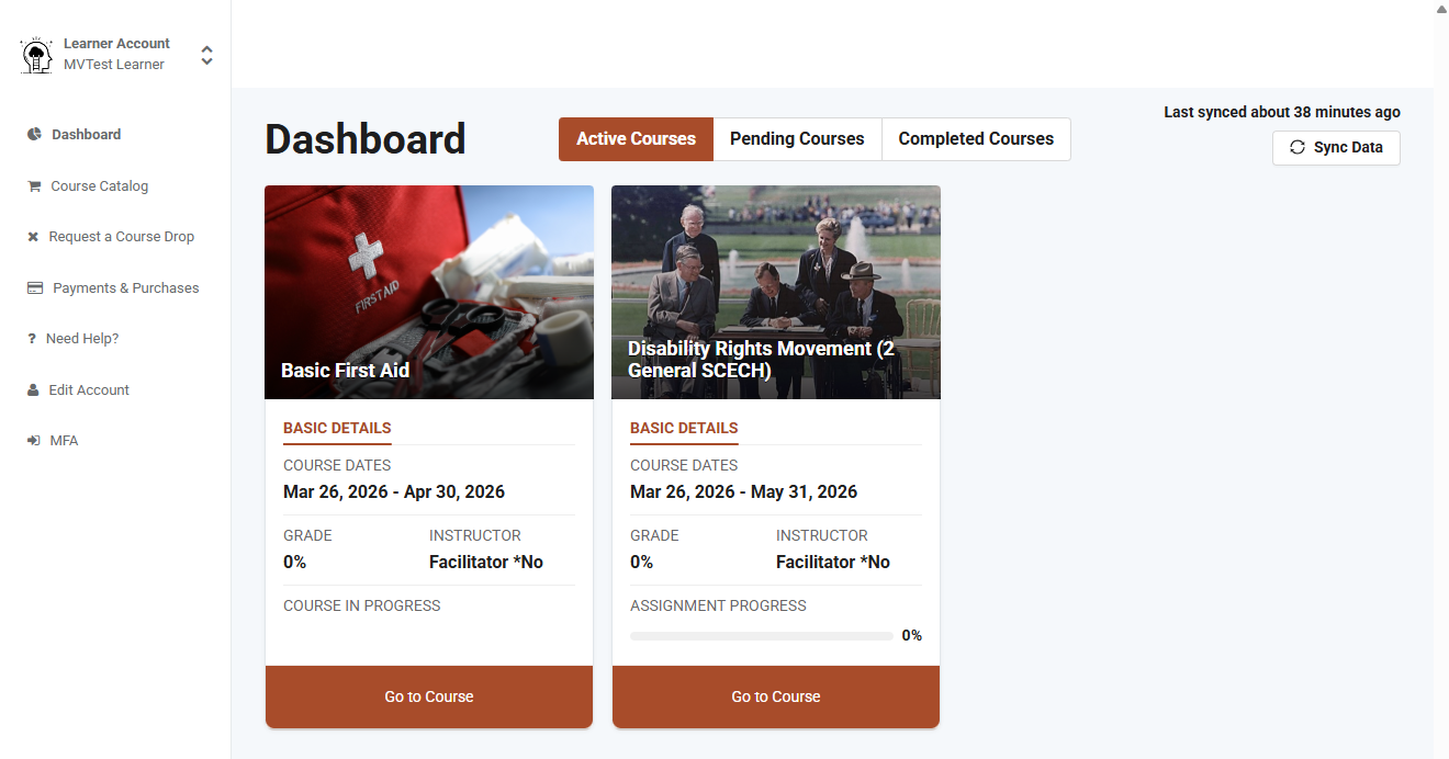 - Active Courses: Access courses that a learner has registered for but has not yet completed.
