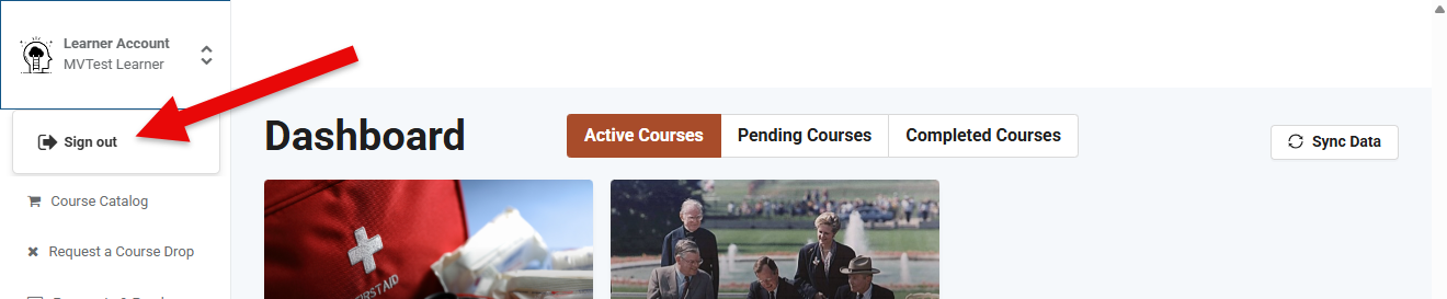 Learners have the freedom to leave the PLP at their convenience. To log out, tap the profile drop-down and choose the "Sign out" option.