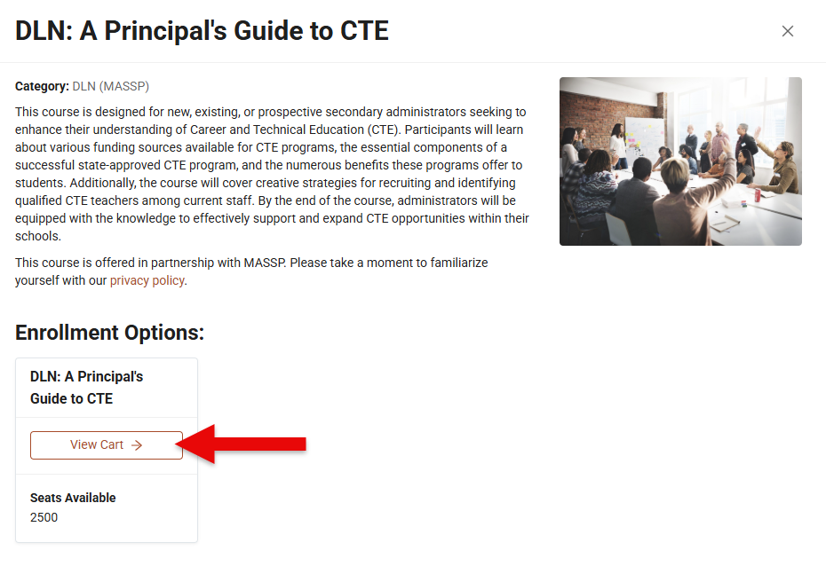 - Next, tap the View Offerings button to view additional information about the selected course.