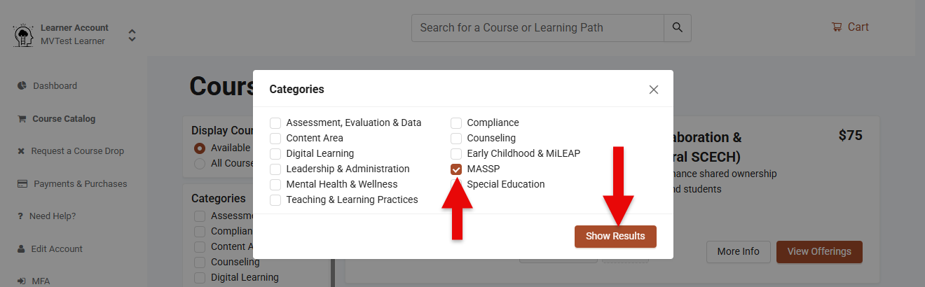 - When the Categories menu is displayed, select MASSP and then tap the Show Results button.