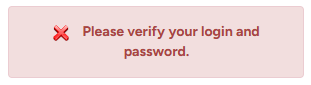 Error Message: “Please verify your login and password.”
