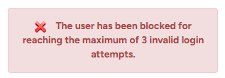 Error Message: “The user has been blocked for reaching the maximum of 3 invalid login attempts.”